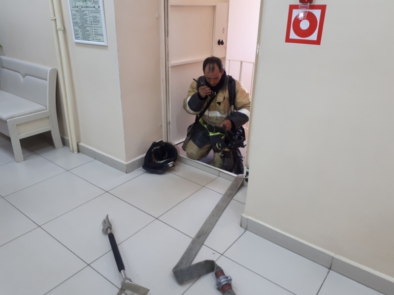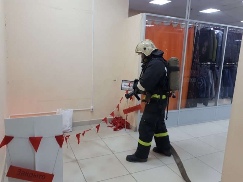 К зданию центра на улице Ленинградской накануне были подтянуты 7 единиц техники, 20 человек личного состава. По легенде на втором этаже здания был обнаружен очаг возгорания. Посетители и рабочий персонал центра приняли участие в тренировке и самостоятельно эвакуировались на улицу. Звеном гозодымозащитников был найден и спасен условный пострадавший.