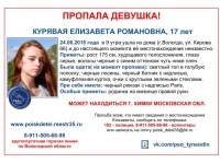 В Вологде волонтеры и полиция ищут без вести пропавшую несовершеннолетнюю девушку. По информации поисково-спасательного отряда «Ты не один», 17-летняя Елизавета Курявая ушла из дома на улице Кирова, 66 в областном центре 24 июня около 9 часов, с тех пор ее местонахождение неизвестно. Предположительно девушка могла уехать в город Химки в Московской области.