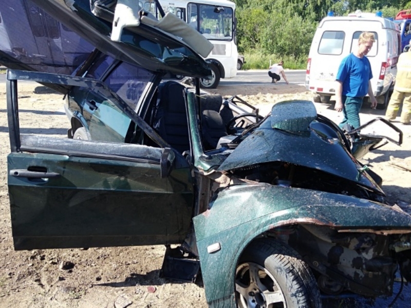 Водителя «девятки» вырезали из покореженного автомобиля после ДТП