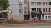 Крупный засор канализационной сети диаметром 600 миллиметров произошел вечером 26 июня. Пришлось вскрывать участок труб в районе перекрестка Петина и Ленинградской.