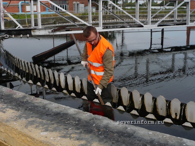 Именно на очистные сооружения канализации стекается вся водопроводная вода с отходами жизнедеятельности вологжан. Для ознакомления с производственными процессами для представителей СМИ была организована обзорная экскурсия по цехам станции очистки. Как оказалось, первым делом вода очищается от грубых примесей.