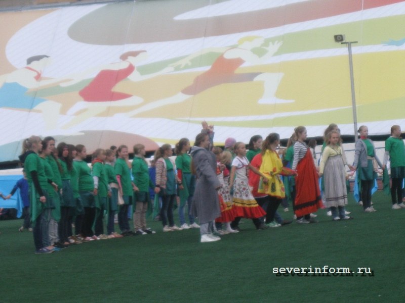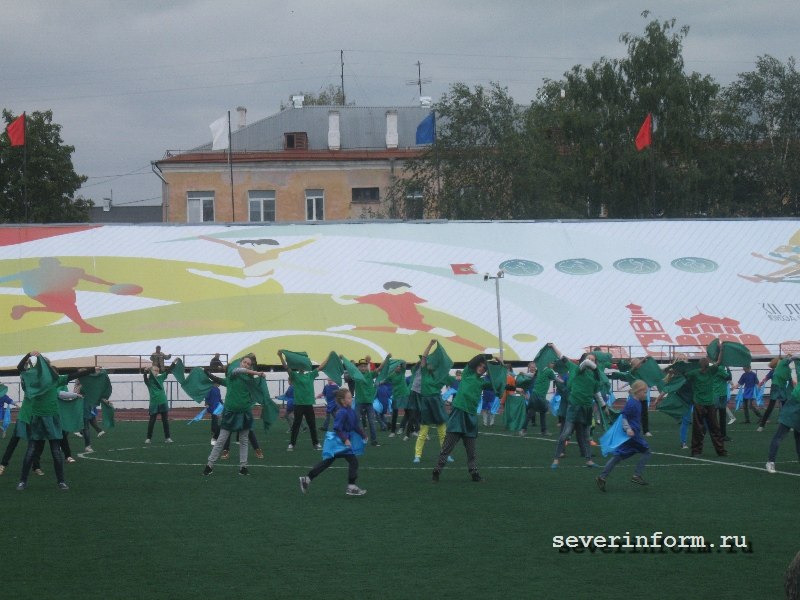 Торжественное открытие Спартакиады отрепетировали на стадионе «Динамо» в Вологде. Дети и подростки в разноцветных костюмах представили историю города. Ребята под руководством организатора танцевали и с помощью декораций иллюстрировали повествование. Генеральная репетиция заняла чуть больше получаса.