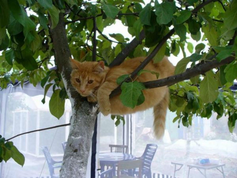 В службу спасения позвонили местные жители, которые рассказали, что на дерево на уровне третьего этажа залез кот. Самостоятельно слезть он уже не смог.