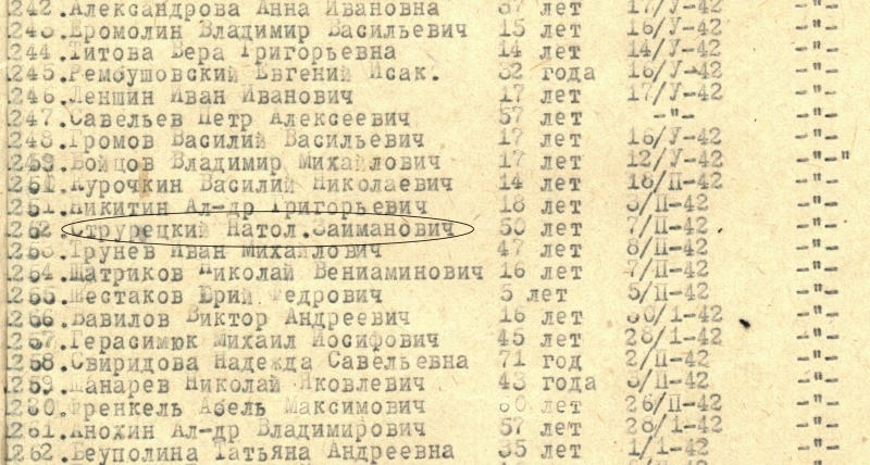 Государственный архив Вологодской области (ГАВО) отправил в Санкт-Петербург копию документа о братских могилах блокадниках-ленинградцев на Горбачевском кладбище Вологды. Напомним, один из погибших — Натан Стругацкий, отец всемирно знаменитых фантастов Аркадия и Бориса. Стругацкий-старший умер в эвакуационном госпитале 7 февраля 1942 года, в документе (перепечатке с рукописного оригинала 1940-х годов) он значится как «Струрецкий Натол. Заиманович». Вероятно, это опечатка машинистки, так как фамилии «Струрецкий», похоже, вообще не существует: например, ее не знают ни многомиллионные соцсети, ни какой-либо из русскоязычных интернет-поисковиков.