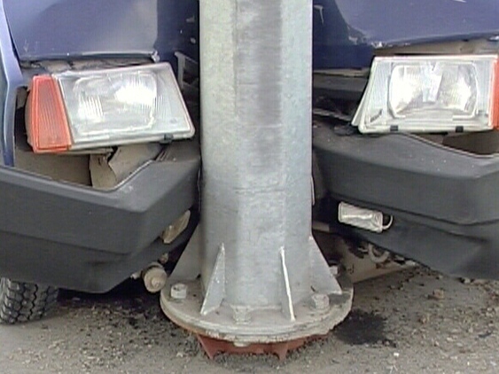 Пьяный череповчанин на автомобиле врезался в столб, уходя от полицейской погони