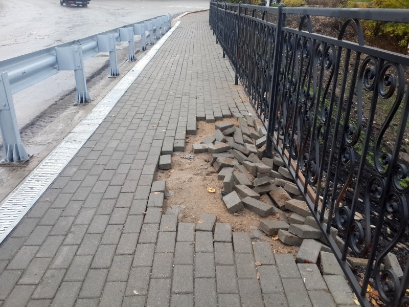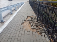 Тротуарная плитка на мосту через Ворожу обвалилась