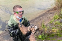 Пострадавшего заметил представитель подрядной организации. Птица из последних сил барахталась в иловом осадке. Как сообщают «Вести 35», мужчина с риском для жизни добрался к представителю дикой природы и вытащил его.