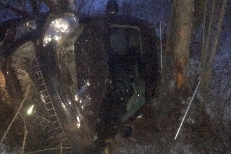 Под Череповцом иномарка на скользкой дороге улетела в кювет