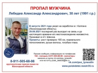 30-летний житель Шексны уехал на заработки. В августе этого года Александр Лебедев отправился в посёлок Колпино. В последний раз выходил на связь с близкими 29 сентября. С тех пор местонахождение мужчины неизвестно.