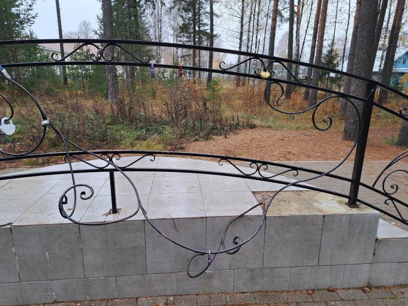 Вандалы испортили кованые украшения мостика на главной аллее и воротах.
