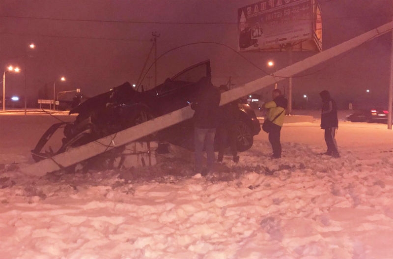 Ауди с ярославскими номерами влетела в столб в Вологде