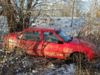 «Дэу Нексия» слетела с дороги в кювет и застряла в кустах