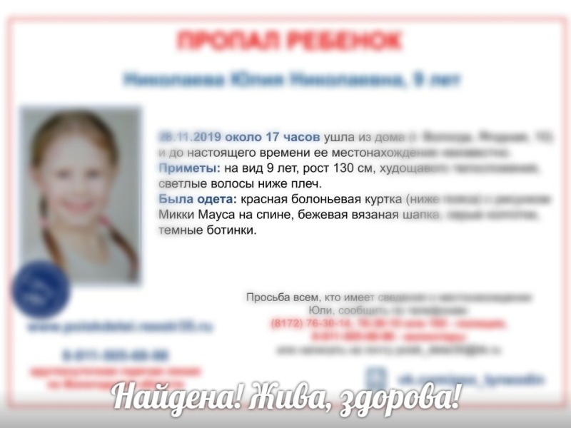 Девятилетняя Юлия Николаева нашлась живой и здоровой.