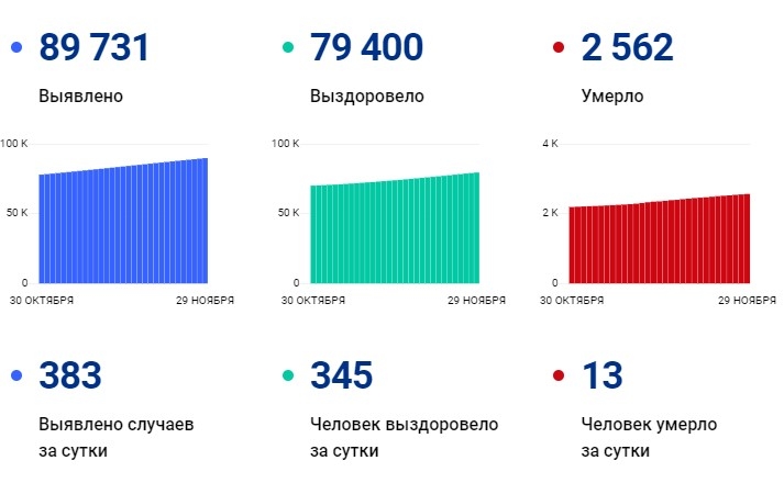 Выявлено 383 новых случая. В последний раз такой показатель наблюдался в начале ноября. Общее количество заболевших коронавирусом приближается к 90 тысячам. По этому критерию область занимает 27 место в стране.