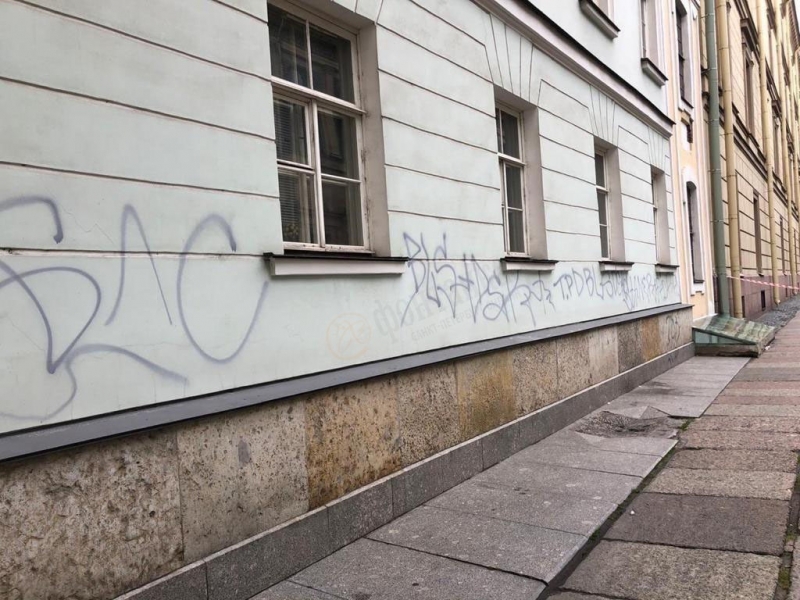 В конце лета этого года на стене Эрмитажного театра на Дворцовой набережной появилась надпись длиной в 10 м. Буквы достигали высоты 50 см.