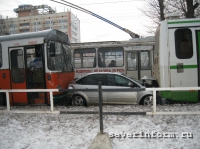 Автобус и троллейбус в Вологде смяли «легковушку», сообщает ИА «СеверИнформ — Новости Вологды». ДТП с участием трех транспортных средства случилось около 12 часов сегодня, 29 декабря, на улице Октябрьской. Как рассказали корреспонденту агентства в дежурной части ГИБДД, троллейбус въехал в "Ford", после чего иномарку откинуло на рейсовый автобус маршрута «Вологда — Молочное». По словам очевидцев, легковой автомобиль получил серьезные повреждения — он практически смят в гармошку. На месте работает наряд ГИБДД. К счастью, в аварии никто не пострадал.