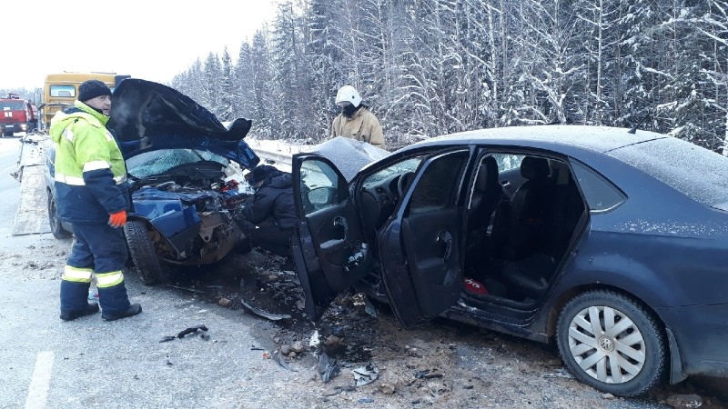 Трагедия произошла накануне, 28 декабря, в утра. 22-летний водитель "десятки" ехал со стороны Кирова в направлении Сыктывкара. На 711 км автодороги "Вятка" легковушка вылетела на встречку и столкнулась с Volkswagen Polo.