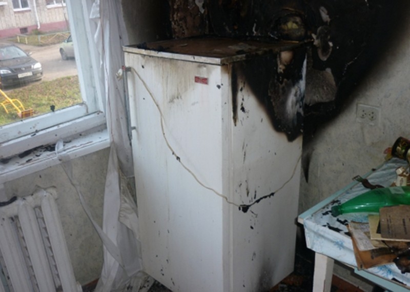 В квартире произошел пожар из-за неисправности рефрижератора.