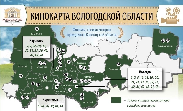 Вышло третье издание кинокарты, в котором отражены фильмы, съемки которых проходили в нашем регионе. Специалисты дома музыки и кино «Комсомолец» внесли уточнения и новые проекты.
