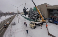 Конструкцию планируется сдвинуть на фасаде здания. Иначе украшение плохо видно с улицы из-за выросших елей у главного входа. Вопрос размещения предстоит обсудить с главным архитектором города.
