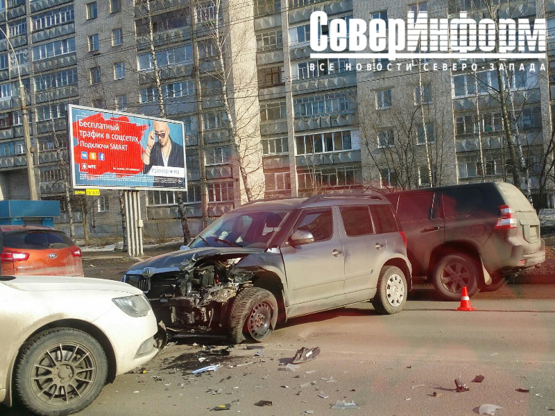Улица Ленинградская в Вологде встала в пробке из-за столкновения трех машин (ФОТО, ВИДЕО)