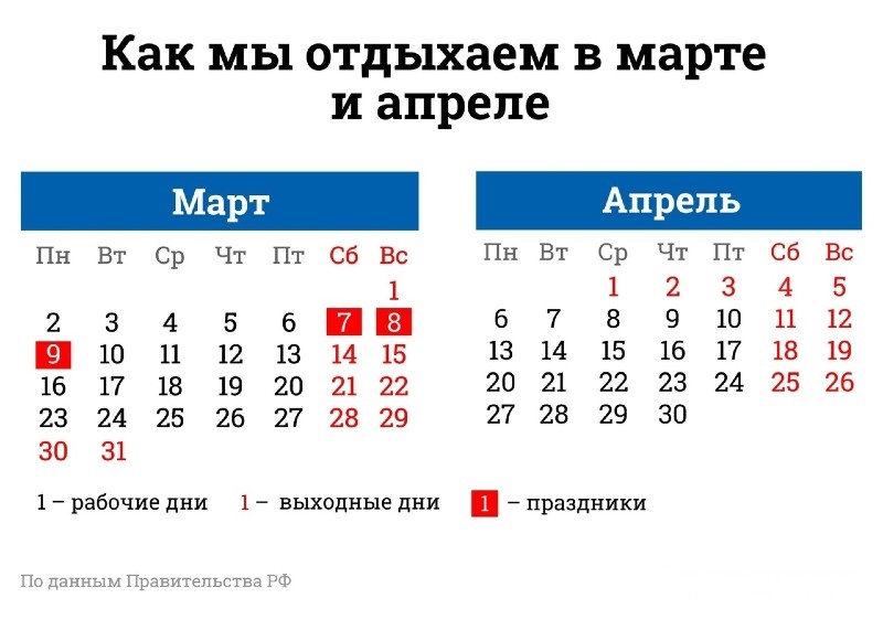 С 30 марта по 5 апреля россияне уходит на внеплановые выходные. Такое решение принял Президент Владимир Путин. Причиной этого объявления стал коронавирус и угроза его распространения.