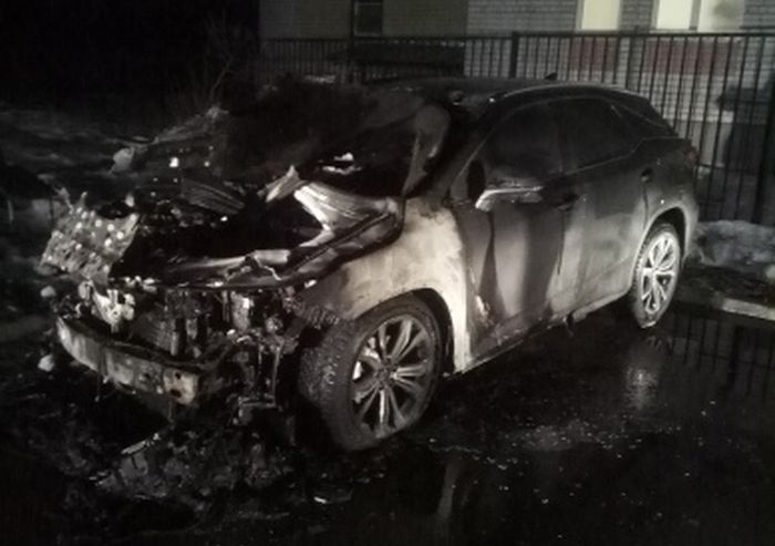 В огне сгорели передние фары, бампер, решетка радиатора. Пламенем повреждены моторный отсек, электропроводка, лакокрасочное покрытие, остекление, салон и передние колеса.