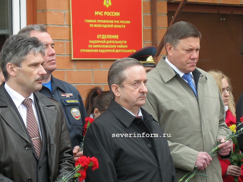 На открытии монумента присутствовали родственники погибших, сотрудники МЧС, губернатор области Олег Кувшинников и спикер Вологодского Заксобрания Георгий Шевцов.