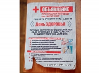 Объявления, зазывающие вологжан на Дни здоровья, появились 30 апреля в Водниках, Лукьяново, районе улицы Московской, селе Молочное и других частях областной столицы. Среди организаторов значились культурно-досуговый Центр «Забота», Центр по работе с населением и главный врач поликлиники № 1, депутат городской Думы Владимир Богатырев. Как выяснилось, ничего подобного не планировалось. Только в Молочном к назначенному времени пришло несколько десятков пенсионеров.