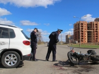 В Череповце столкнулись мотоцикл и иномарка. ДТП случилось 30 апреля на улице Раахе. Согласно предварительным данным, 36-летний водитель мотоцикла двигался по главной дороге прямо от «кольца» на улице Батюшкова. В это время с улицы Годовикова навстречу ему выехал автомобиль Volkswagen Tiguan.