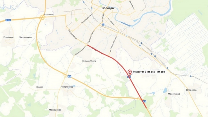 Соответственно на участке от Пошехонского шоссе Вологды до деревни Надеево будут введены различные ограничения автомобильного движения.