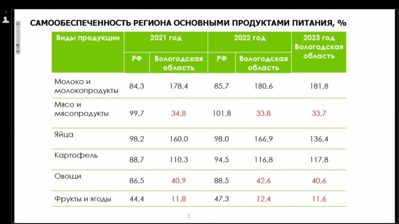 Пока в Вологодской области фиксируется низкая обеспеченность населения мясом – всего 33%.