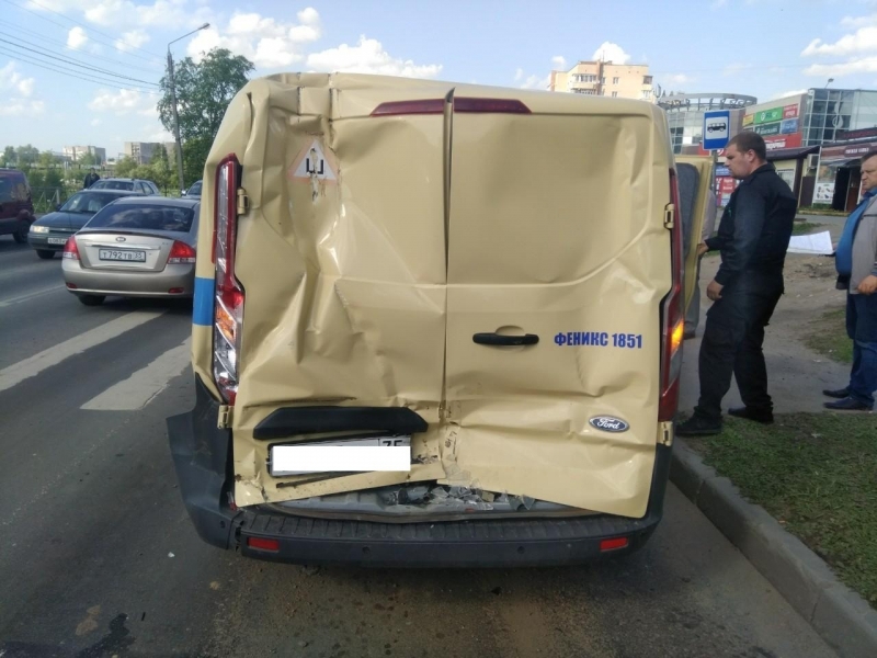 ДТП произошло накануне 29 мая на улице Конева. Водитель КАМАЗа двигался со стороны улице Пирогова в сторону улицы Белеява. По словам госавтоинспекторов, он не выдержал безопасную дистанцию и столкнулся с впереди идущим Фордом, на корпусе которого нанесены обозначения одного из банков. Из-за удара спецмашину отбросило вперед на стоящий автомобиль Шкода Фабия. В результате происшествия банковский автомобиль Форд оказался сильно поврежден, а его водитель получил травмы, сообщает ИА «СеверИнформ».