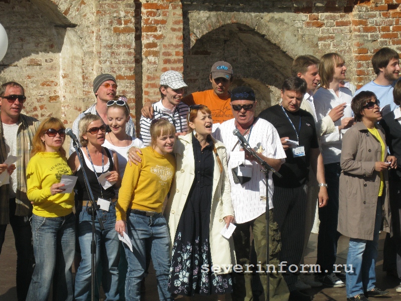 Актеры-участники фестиваля "Голоса истории" поют гимн театру