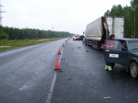 «По предварительным данным, «десятка» стала обгонять впереди идущий грузовик. При выполнении маневра легковушка задевала колесо большегруза. Водитель фуры не заметил этого и скрылся. От удара «ВАЗ» развернуло поперек проезжей части, и в него врезается «МАЗ» с прицепом, который ехал из Санкт-Петербурга. От удара фуру выкинуло в кювет, но прицепом она задела еще один грузовик. Все транспортные средства теперь лежат по обочинам», - рассказали корреспонденту ИА «СеверИнформ» в отделе пропаганды ОБ ДПС ГИБДД УМВД России по Череповцу.