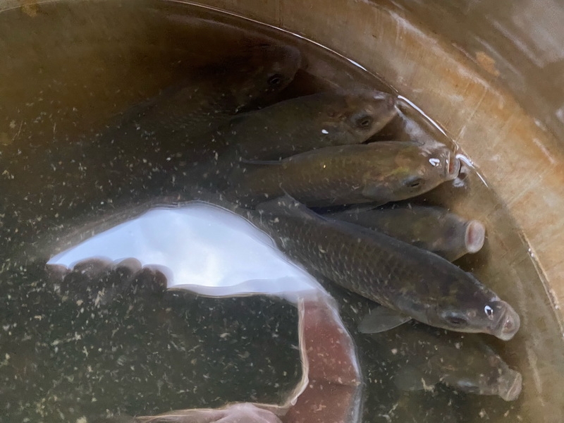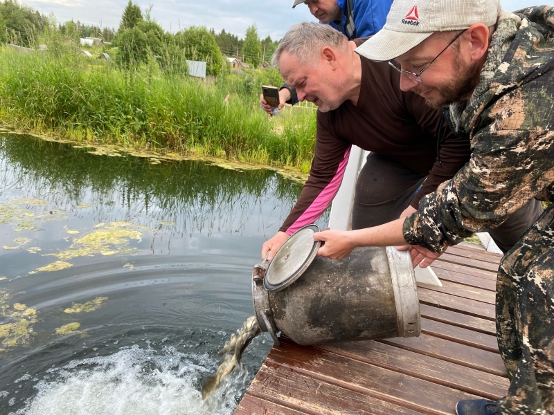 «Емкость бидона в 36 литров не давала гарантии довезти большее количество рыбы в добром здравии. Все-таки дорога длинною в полторы сотни км дело для карася не очень привычное. Пришлось даже во время движения регулярно включать автомобильный компрессор для насыщения воды кислородом, чтобы рыба не задохнулась. К счастью для рыбы и для всех нас трансфер село Заднее, Усть-Кубенского района - село Куркино, Вологодского района прошел, как говорится - без сучка, без задоринки! Все рыбки доставлены до места выпуска в живом состоянии. Стоит сказать, что многие особи уже с икрой и вскоре готовы нереститься, чему мы все, конечно же - очень рады!», - поделился новостью смотритель усадьбы Николай Сайкин.
