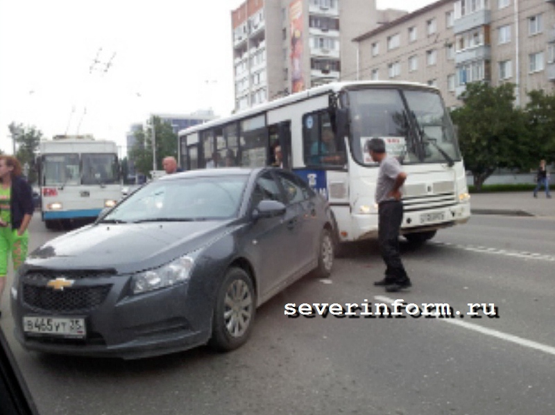 ДТП случилось во вторник, 30 июля, около 19:20 на улице Герцена на парковке у одного из торговых центров. Припаркованный автомобиль «Chevrolet Cruze» откатился назад и врезался в маршрутку. Водителя внутри легковушки не было.