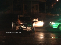 Отечественная легковушка врезалась в столб в центре Вологды. Авария произошла 29 июля, около полуночи, на перекрестке улиц Зосимовской и Козленской.