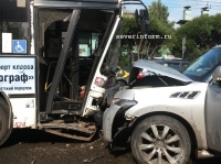Джип "Infiniti" и троллейбус столкнулись в Вологде