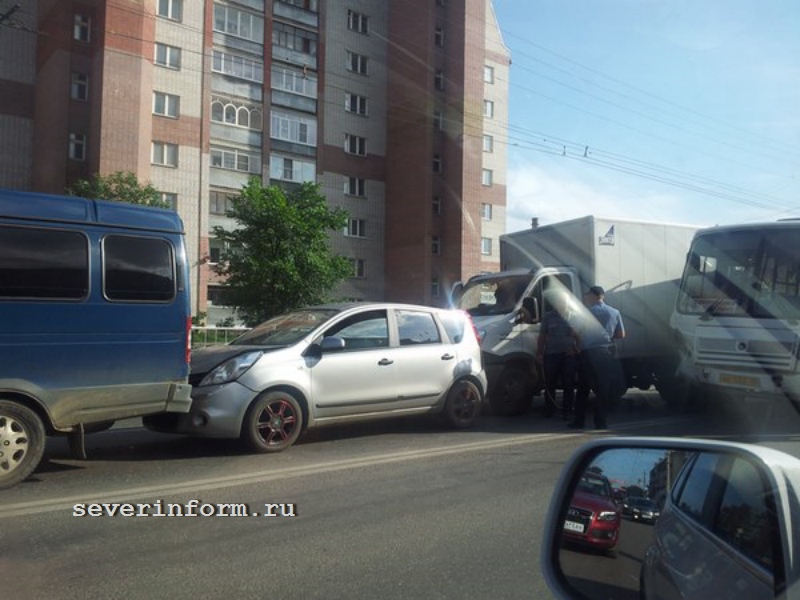 По информации очевидцев аварии, участниками ДТП стали пассажирский автобус, фургон, «ГАЗель» и легковушка. Сведения о пострадавших пока не сообщаются. На месте происшествия сейчас работают сотрудники ГИБДД.