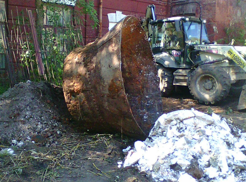 Предмет был найден у стен Центра дополнительного образования на улице Чернышевского во время земляных работ. Тракторист поднял из земли большой предмет из железа.