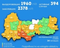 Всего в области 2378 подтвержденных диагнозов. Выздоровели 1960 человек, за сутки - 12. Активных больных насчитывается 394.