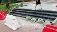 На лестнице перед площадкой, ведущей к знаменитому памятнику, раскрошился бетон. Плиты частично съехали.