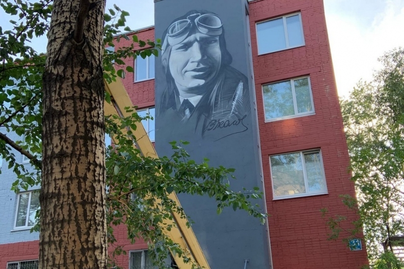 Гигантский портрет Чкалова появился на одном из зданий в Череповце