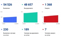С учетом суточного прироста общее количество случаев достигло 54526 случаев. Выздоровели 48657 пациентов, в том числе, 189 за последние сутки. Таковы официальные данные на утро 30 июля.