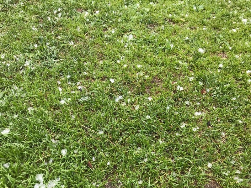 Град буквально завалил огороды и участки частных домов. Упавшие с неба куски льда похожи на те, что хранят в морозилке. По размеру они практически до 2 см.