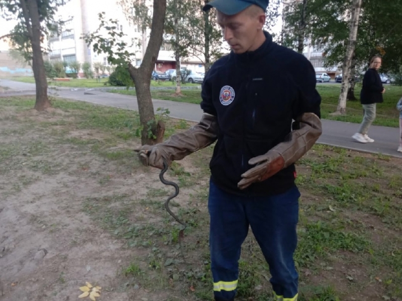 Оказалось, что к образовательному учреждению приполз уж. Он не представлял опасности. Специалисты вывезли «гостя» в лес и отпустили.