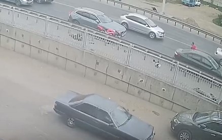 Двухколесный транспорт врезался в легковушку. ДТП случилось в 9:50 во вторник, 30 августа, на мосту 800-летия. Авария попала в объектив городской камеры видеонаблюдения.