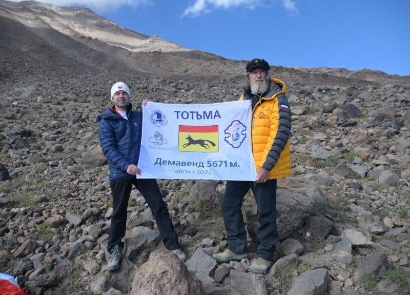 Штурм вершины проходил 26 августа. Александр Абрамов, руководитель экспедиции, разделил людей на несколько групп, которые в разное время подошли к точке. Поэтому флаг Тотьмы на Демовенде развернул тотьмич с сыном Евгением, сообщает ИА «СеверИнформ».