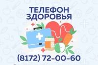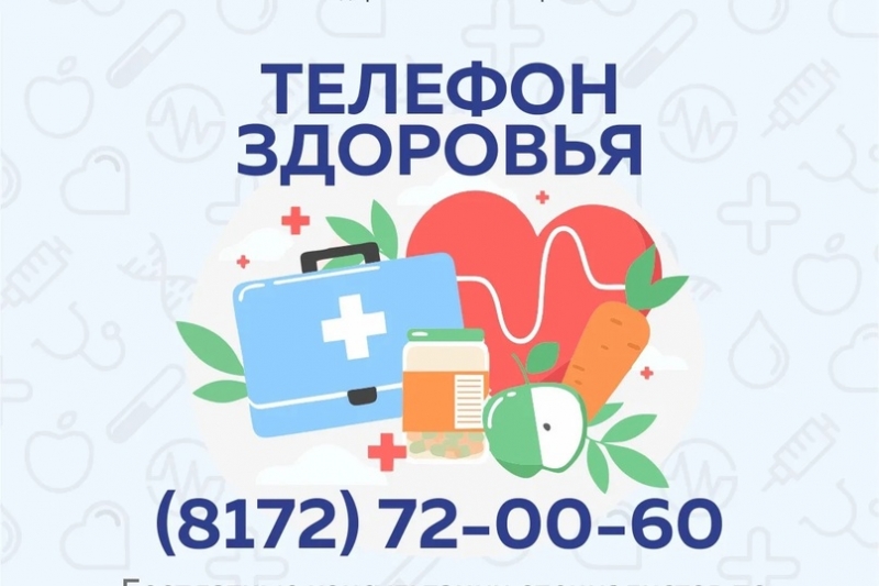«Телефон здоровья» работает на базе регионального центра общественного здоровья и медицинской профилактики. Линия открыта по номеру 8 (8172)72-00-60 каждую среду с 15 до 16 часов, сообщает ИА «СеверИнформ».